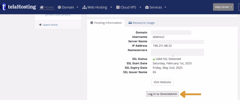 Accessing DirectAdmin on telaHosting