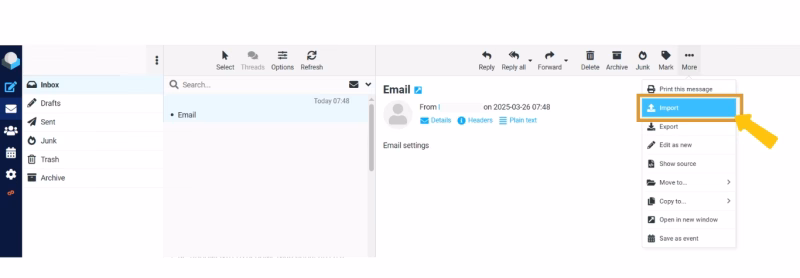 In order to back up (export) emails to your local computer, select the required email(s) and click on More icon in the bar above: