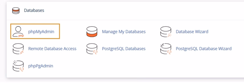 In cPanel you can import and export databases using the phpMyAdmin menu, which you can find in the Databases section. Note that only databases of 1 GB maximum can be imported/exported in phpMyAdmin. Larger databases should be imported/exported via SSH. To do this, follow the instructions here or reach out to our technical department via ticket.
