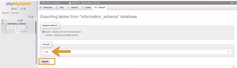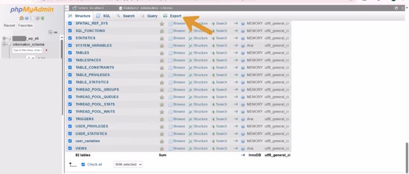 4. Choose the tables that you need to export or click Check All. Click Export to proceed: